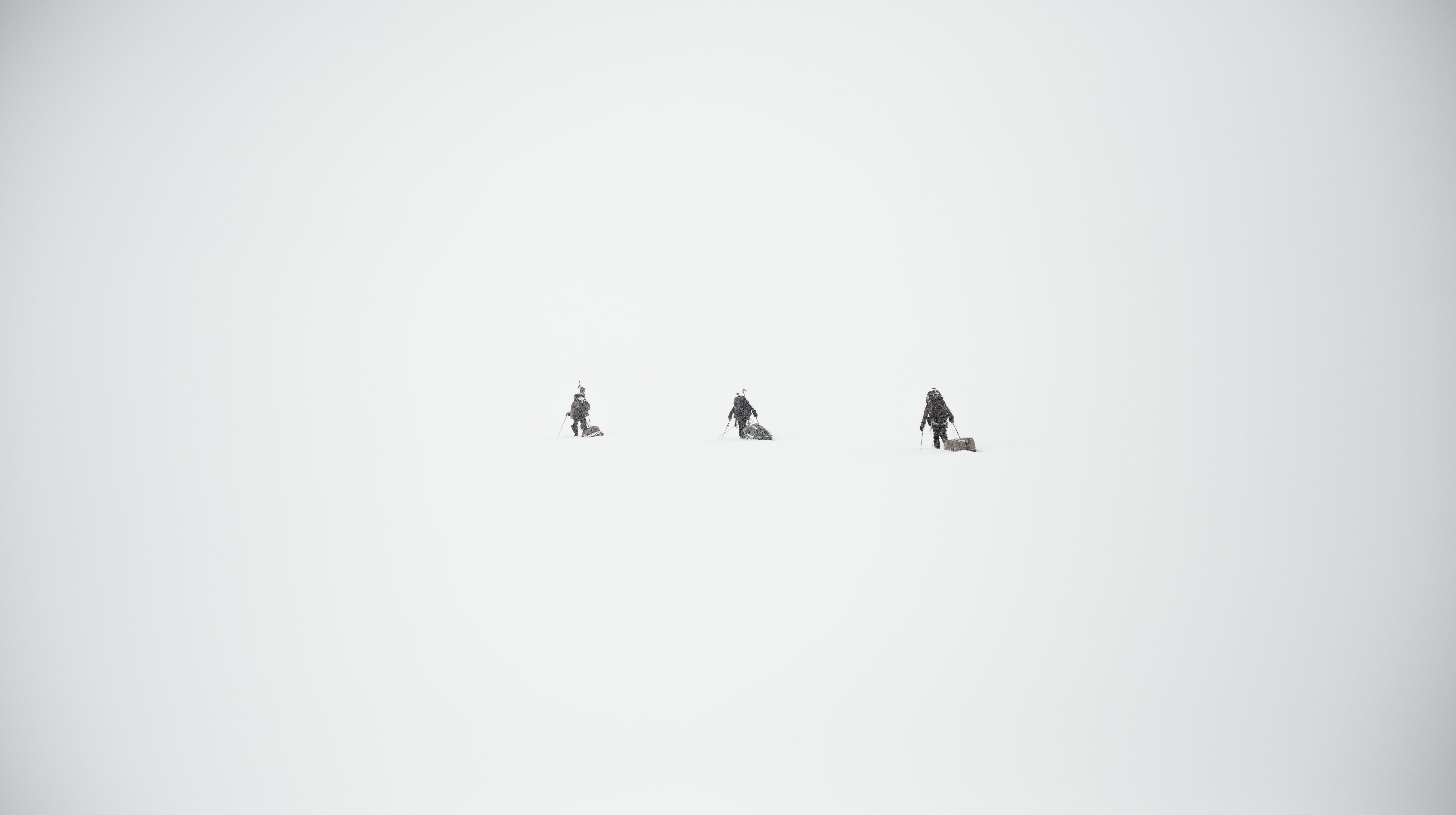 Je suis première de cordée. Je descends suivi du reste de mon équipe dans la neige fraîche des derniers jours, dans le blanc totale de la tempête d’aujourd’hui. Je suis les drapeaux jusqu’au camp, ils sont mon seul repère dans cette immensité blanche.