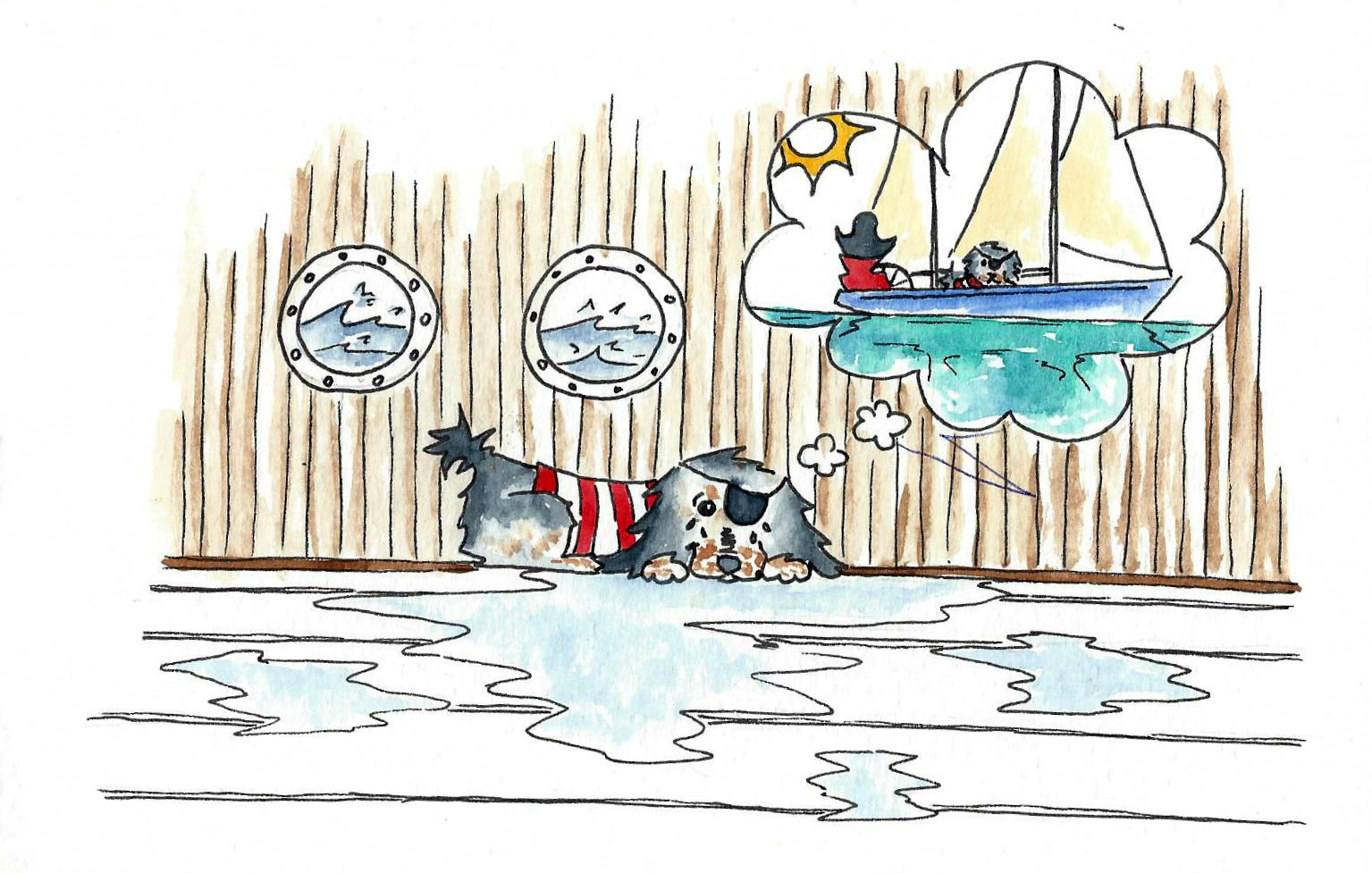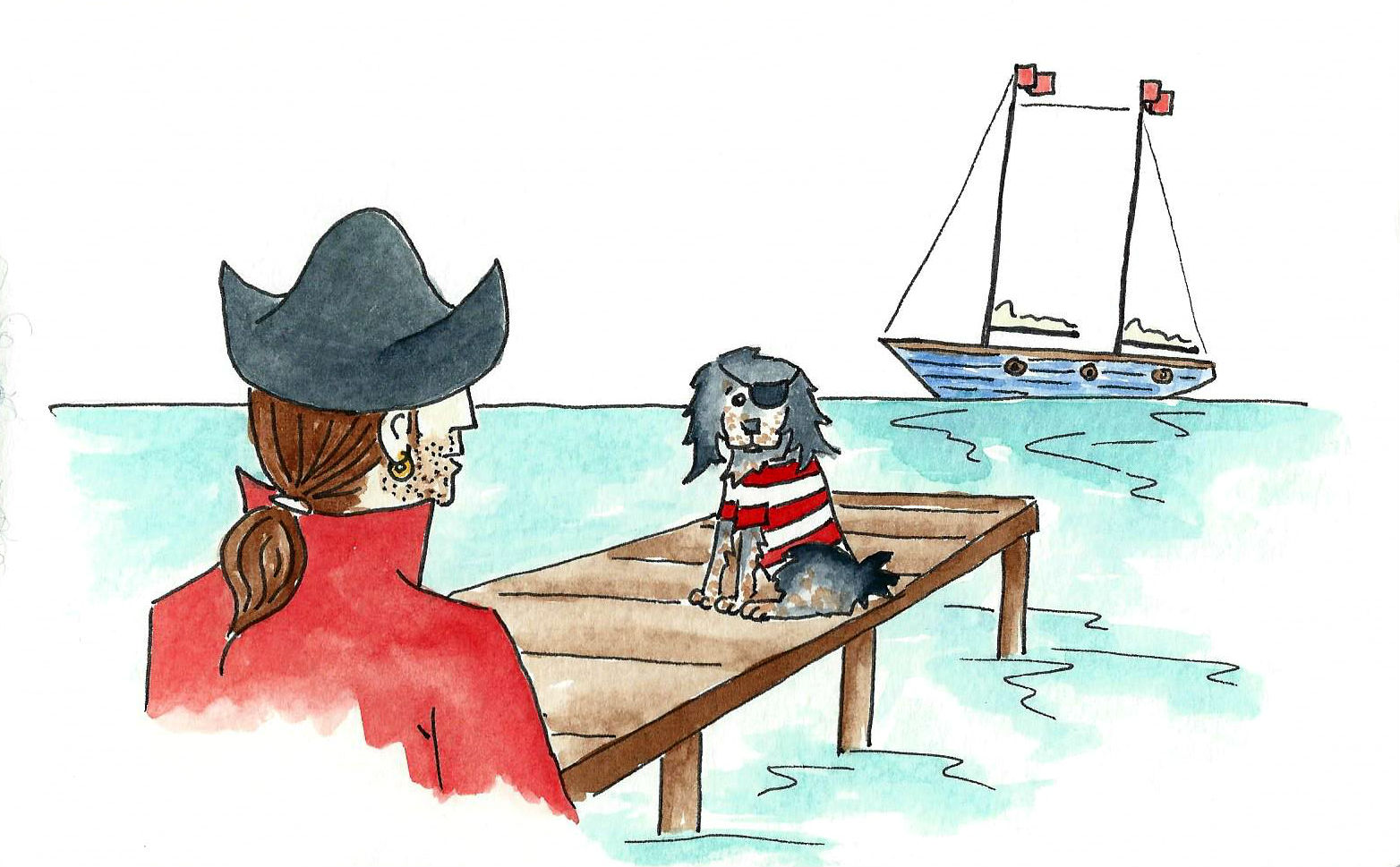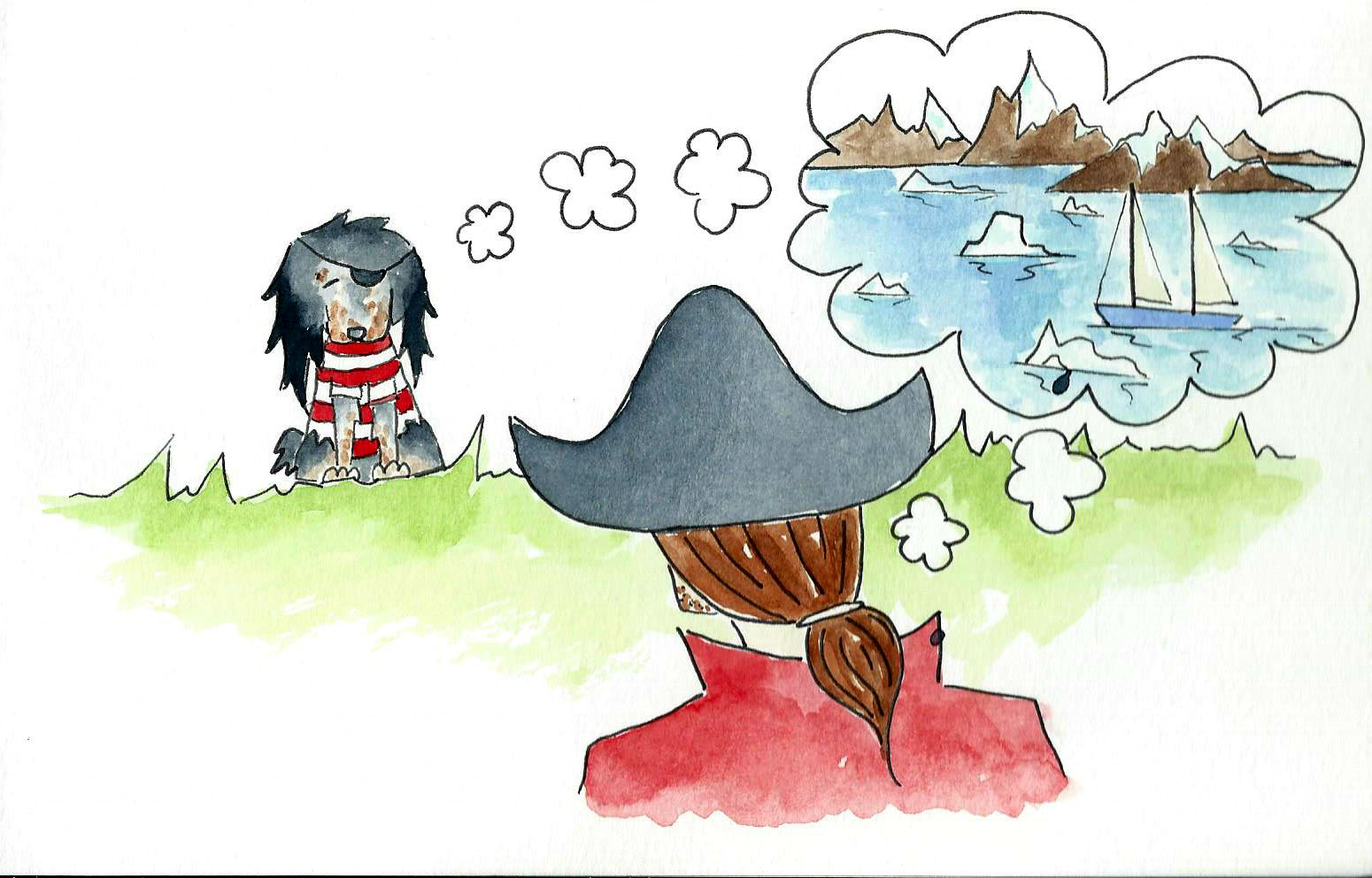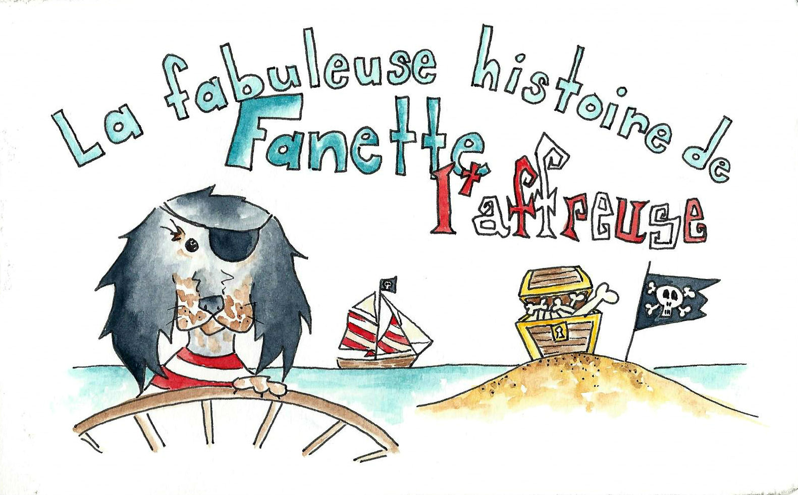 C’est l’histoire de Fanette l’Affreuse, chienne et équipière du célèbre pirate Chris le Téméraire. Fanette avait parcourue les océans avec son maître et capitaine à bord de leur grande goélette. Dans les nombreuses aventures qu’ils vécurent, elle y laissa un bout de queue et y abima un œil. Depuis, elle avait réellement l’aspect d’un pirate.