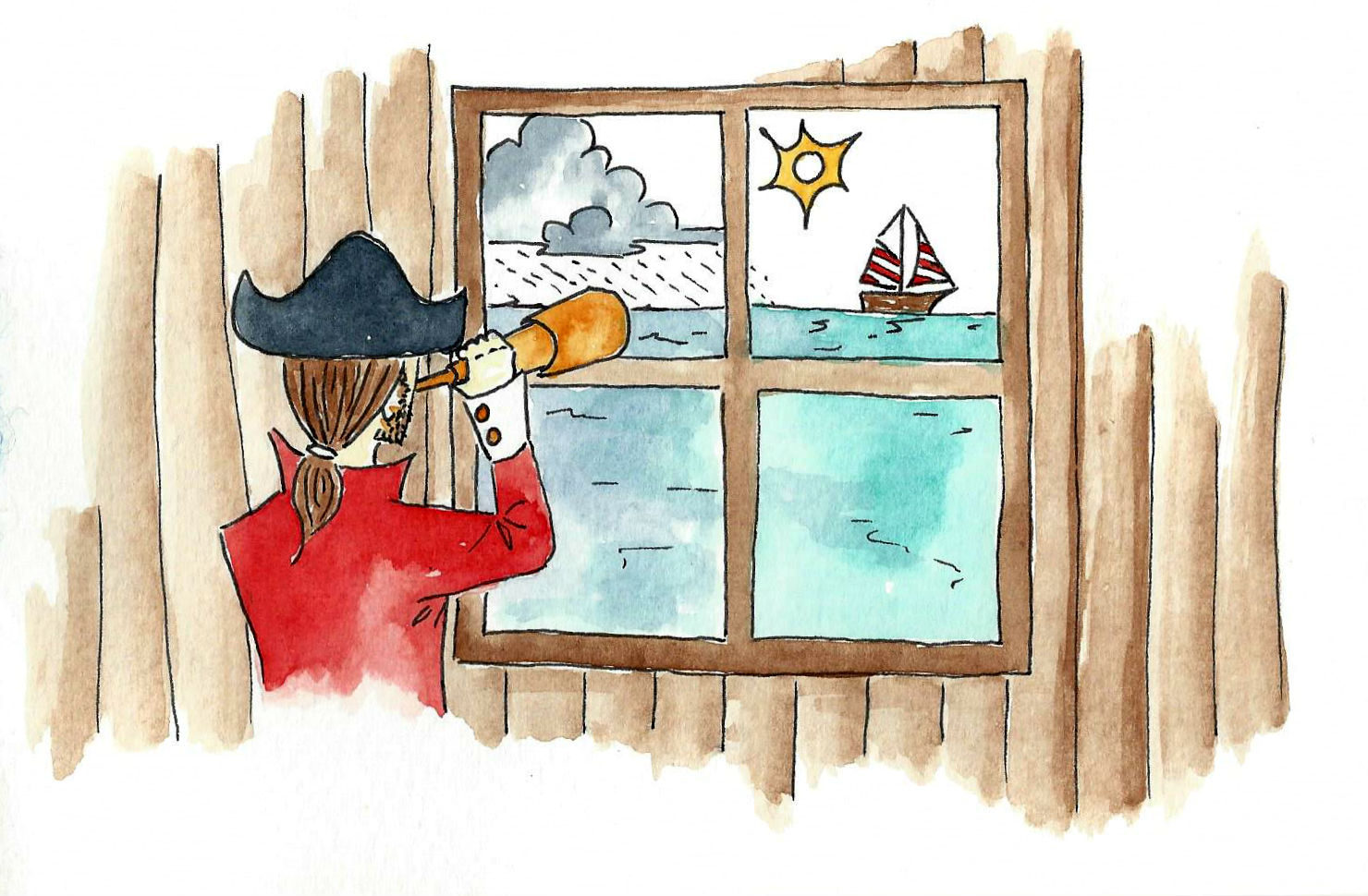 Elle était épuisée de devoir obéir constamment aux ordres du Capitaine et de ne jamais pouvoir courir librement. Elle eut donc une brillante idée lors d’une longue escale sur l’île de la Barbade. Alors que le Capitaine croyait qu’elle courait toute la journée autour de l’île, Fanette l’Affreuse travaillait sans relâche à la construction de son propre bateau. Tout son temps, elle le passait à construire son petit voilier de bois juste pour elle.